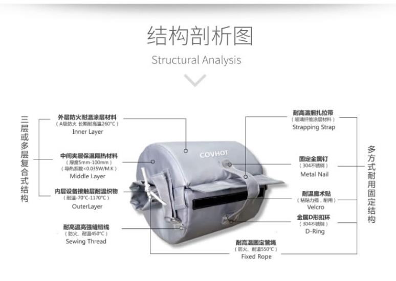 可拆卸保溫套是一種由新型環保材料制成的工業設備保溫產品,廣泛應用于食品行業、制藥行業、輪胎硫化制造、工業窯爐、生活民用、車輛排氣系統、柴油及燃氣動力、鐵路火車、航空領域、船用產品、石油行業、電廠電站、鋼鐵冶金等領域。
